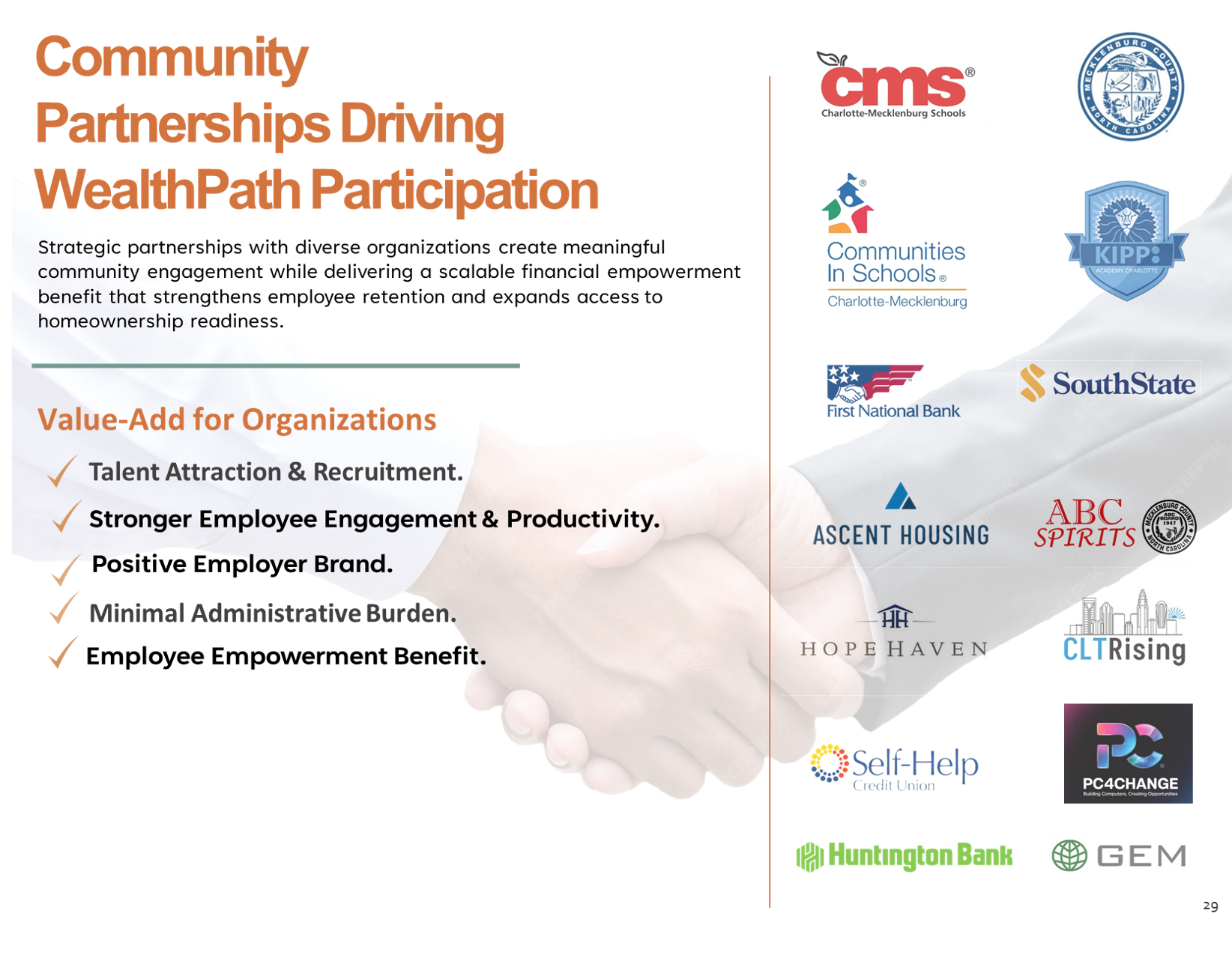 Whether you’re an organization interested in partnering, a donor seeking to expand attainable homeownership, or a working family ready to begin the WealthPath Homeownership journey, there’s a place for you in this movement.